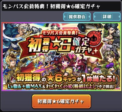 アプデ後に予定通りやって来ました。モンパス会員限定ご新規確定ガチャが。これ割と楽しみに待ってました。何せ初ゲ確定ですからね。