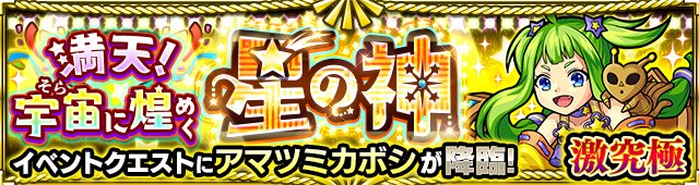 新イベラストは激究極のアマツミカボシ。とりあえず激究極だけは進化神化が存在するので片方をサッサと片付けてしまいたい所。特に神化はWアビ持ちなので作っておいて損は無いでしょう。