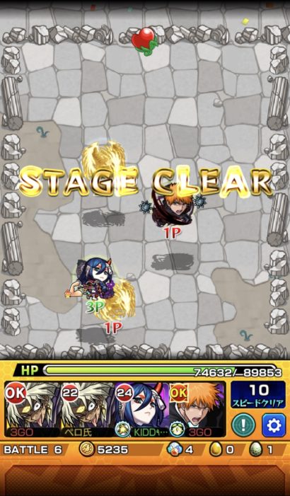 枠3でやってましたがもう少し早いパーティーがあるかと。貫通制限を処理する事でボスの防御力がダウンしてダメが通り易くなる仕様でしたね。この後、マナ2体入れてましたがそっちの方が俄然早かったです。一護も友情が強力なので優秀ではあります。