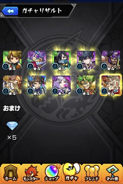 ☆5〜6率50%の所謂、神引きってやつでしたね(^ ^) こんなの久々ですわ。このガチャは限定確定って訳では無いのですが、初ゲ限定が2体は十分に勝ちでした(゚∀゚) この調子がランクボーナスのガチャでも来てくれる事を願うとしましょうかね。欲を言えば、ソロモン出たら完璧でしたがこの引きで贅沢は言えない。