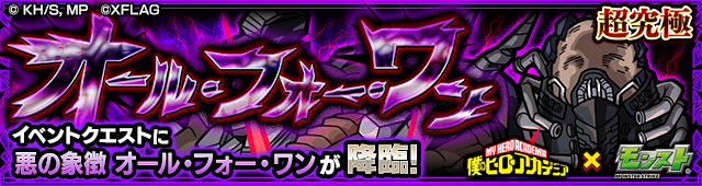 先程までコラボ限定クエストの超究極オールフォーワンが降臨していました。最近はコラボ系しか超究極は無いので苦戦する事も加味しつつ楽しみだったので内容や如何に。