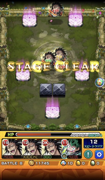 ラストは禁忌八ノ獄。ここに関しては全く連れて行くという発想が無かったのですが、ゲージ飛ばしが出来るとの情報を事前に教えて貰ったので自分の目で確かめるべく出撃しました。 ボス1で全ゲージ飛ばせるのねw 効率も良いし次回からはこれで周ります。