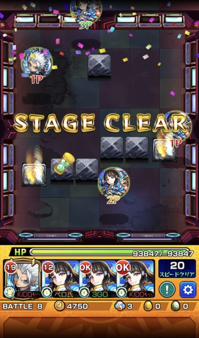 他には現在実装中の新イベ激究極モリアーティの周回を。このクエストに関しては枠を積まないで済むなら積みたくはないのでモンストの日は大いに助かります。