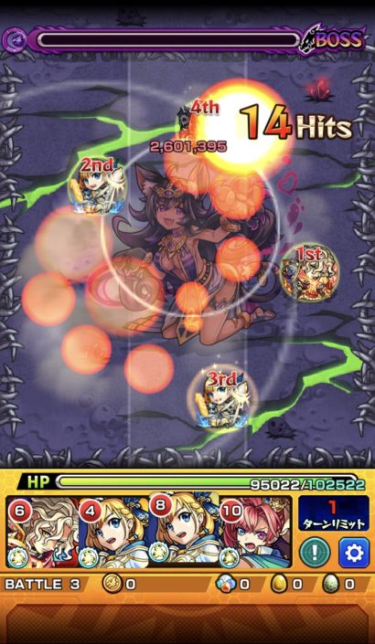 轟絶ラウドラのように毎ターンバリアを破壊してダメを与える仕様。初見だったのでテキトーに組んだだけでしたがギリギリながらクリア。思ったより優しい印象でしたね。