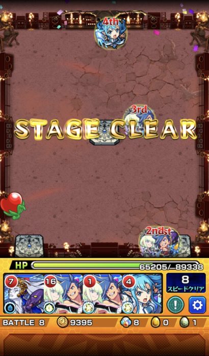 ギミックはワープと魔法陣でしたね。ソートして確認した時に明らかにコイツだろって奴がおりました。後は時間が無いのでテキトーに編成してダメそうならすぐリタイヤして組み直そうと思っていたら