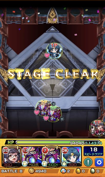 下手に拘って死んでたらそれこそ非効率なので2体だけ窮地を付けて割合が来ても必ず4万は残るようにしました。地味にニギミタマは回復持ってて優秀なのと相変わらず豚さんが強い。 マーキュリーは保険って感じですね。ラスゲはマーキュリーSSで勝確となります。