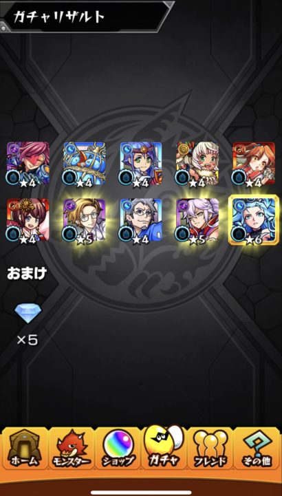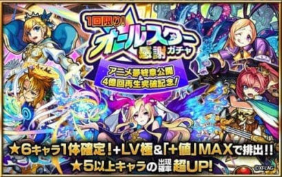 モンストアニメの最終章公開と4億回再生を記念して突如オールスター感謝ガチャが実装されました。☆6が1体確定で且つ、限定も対象となっています。初ゲ確定では無いのと時期って事もあり悩みに悩みましたが、あわよくば的な思考が勝り結果引く事に。