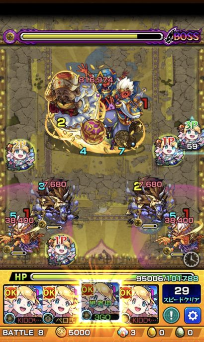 運ボでSS満タンから始まりましたが、運ボ出ないと100%溜まりませんw まだ大黒天が運極じゃない方は友達とローレライ出し合ってモンストの日に周回すればマッハで終わると思います。