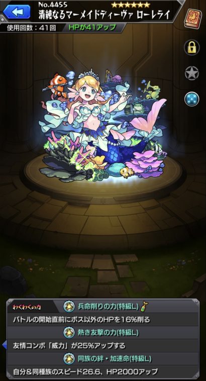 実装されてからというもの厳選だけに集中していた獣神化ローレライ。取り敢えず着地するまでに至りました。