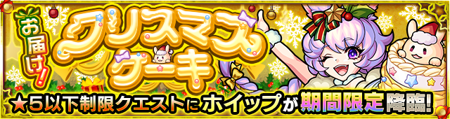 Xmasイベント2日目は制限クエストのホイップが降臨していました。1日目の通常降臨から察するにこちらも簡単な予感がしています。
