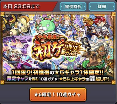 来るだろうとは思っていましたが、出来れば来て欲しく無かった年末恒例確定ガチャがやはり来てしまいました。年始に確保していたオーブを吸われてしまうので避ければ良いだけと分かっていても毎年欲に負けてしまいます。