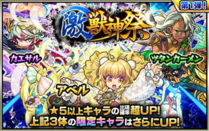 本日より激獣神祭が始まりました。3日間かな?取り敢えず初日のピックアップはツタンカーメン、カエサル、アベルの3体。