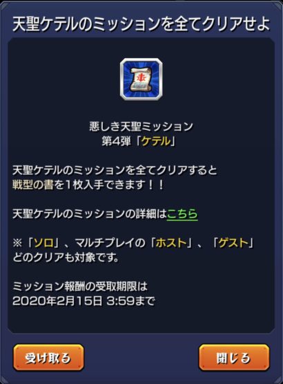 この後は究極を規定回数だけテキトーに周回して素早く片してしまいます。途中の報酬は大した事ないのですが、最後のミッション報酬に戦型の書があるのがタチ悪し。未だに戦型の書は希少価値が高いので逃す手は無いですね。