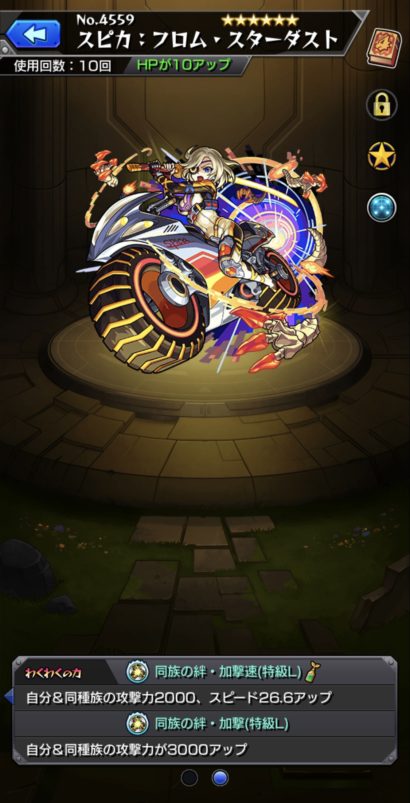 今回の厳選対象の中でもお目当ては獣神化したてのスピカ。個人的には稀にある良獣神化の1体だと思っています。残念賞で終わってしまう獣神化もある中で進化と神化の良い所取りで超AGBまで貰っちゃってどーしたん?くらいに評価しております。