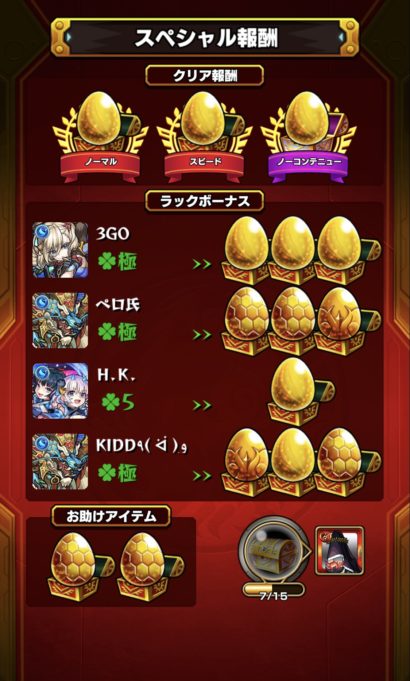 持ってる人を誘う!これに尽きるって事で同じくらいのガチ度の人とマルチ周回。ツァイロンはボス戦入ってからは配置とパネル調整さえ出来れば確実に1手抜けが可能なので、従来のような弱点をひたすら狙ってダメを出すやり方よりも遥かに効率的で優秀。早目に運極作って良かったとつくづく思いました。