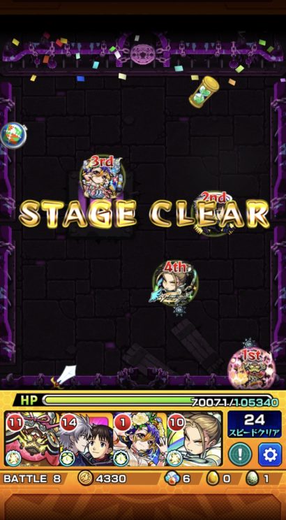 ただただ何も思考する事なく互いにぶつけつつイチャイチャしてたら勝手に終わってました。このクエストは一体…。開始10分でもうやる必要が無くなってしまった(-_-)どうやら豚艦隊でも楽々クリア出来るようなので、まだ運極になってない方で本家は苦手って人はこちらを周回した方が楽かもしれませんね。