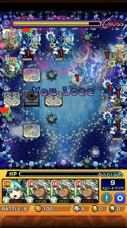 ギミックは地雷、魔法陣、ブロックに加えて撃種変化パネルと今回初登場のボールユニットなるものでした。やはり、予想通りの貫通推奨クエストですね。編成自体は間違いなかったのでホッとしました。