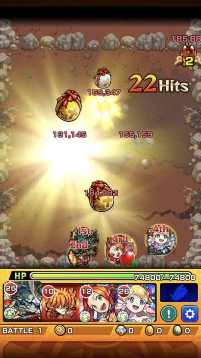 すると、アプデによりランクカンストの上限が開放された時に自動的に再び解放されたランクまで一気に上がりカンストするって仕組み。凄い人達も居るものですね。その人達のお陰で私のようなランク上げ頑張ろうかな勢は効率の良いメンツで周回出来てる訳です。そんな凄い人たちが編み出した編成で火ノマ周回開始。