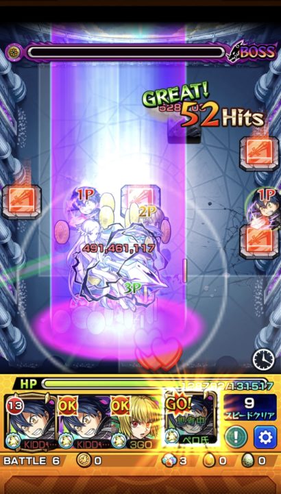 流石は超究極って感じですね。簡単には勝たせてくれません。コンプと同じ攻撃UPのパネルを揃えるのが些か大変。ま、これでこそコラボの超究極って感じで楽しいので◎ やっぱ何でもかんでもペロッと勝てちゃうクエばかりでは張り合いが無いですし。
