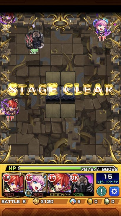 上手な人なら運4で周回出来る難易度でしたね。個人的にはオペコでバフを頻繁に掛けて立ち回るのが楽だったので運3にしました。サクサク周回を進めて残り1周しか出来ない段階でドロップに恵まれず90。ラストで9泥してくれないと終わらない中で結果的に残念ながら5泥で終了(-_-) 何故かサブだけVメーターの活躍により運極完成。本垢よ…。