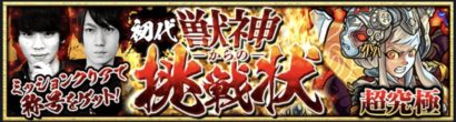 先程まで初代獣神からの挑戦状なるものが実装されておりました。M4のタイガー桜井さんとGAMEWITHのしろさんが考案したクエストのようですね。皆さんクリアしましたかね?一応、超究極扱いらしいのでオーブ5個を回収する為だけに突撃。