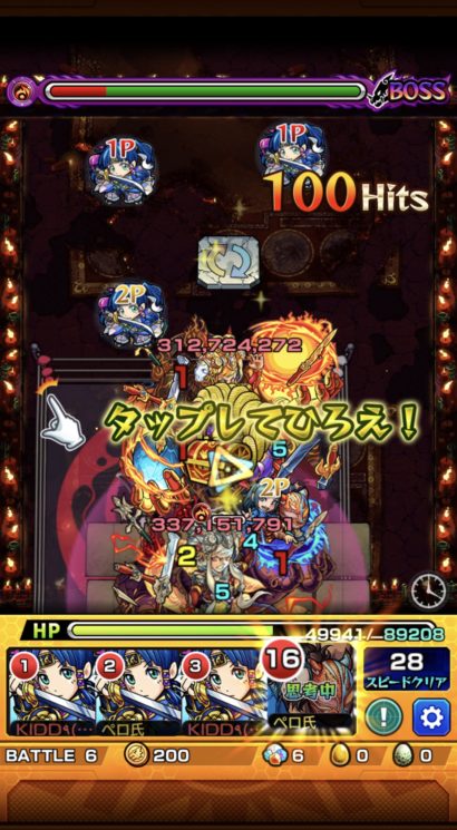 その他のキャラ=ガチャ限は使えないので必然的に降臨パとなります。クエストはボス雑魚全てロボットなのでキラー持ちの沖田がベストでしょう。ボス戦最後まで降臨パでやるの面倒だし自信も無かったのでボス2をフォックスメタルでワンパンする事に。