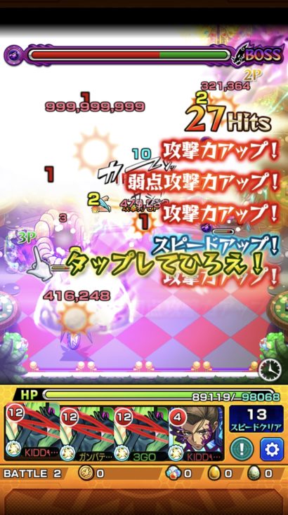 そうするとこんな感じでカンストしてワンパンするのでボス1で終了する事も。