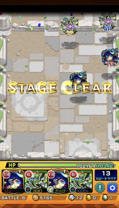 最も効率が良かったのは枠を1体外してガチャ限を積むパーティー。ガチャ限の最適はウリエルorエクスカリバー進化の2択でしょう。コピー友情のセレナーデにより実質、ウリエル4orエクスカリバー4になります。