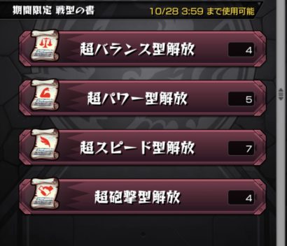 30分という短い時間の中で戦型の書を何枚確保出来るかが肝となる以上は効率を求めるのは必須。色々と試した中でベストな編成がようやく固まりました。