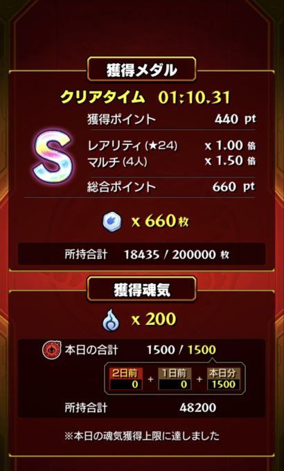 ちなみに今回のMVPは完全に絶賛降臨中の激究極ドクトゥール・フォリー神化です。ゲージが無い点と砲撃型の全敵ロックオンレーザーLに実装時から注目してたのでゲリラ周回までに運極が間に合ってホッとしました。