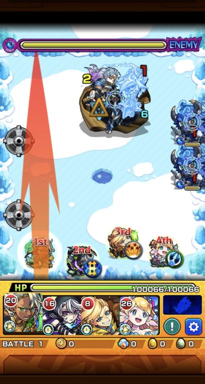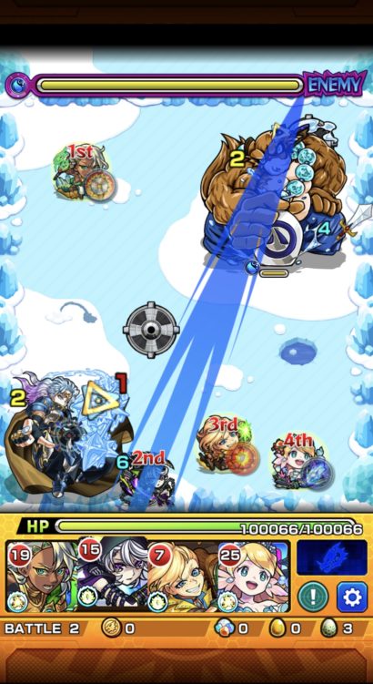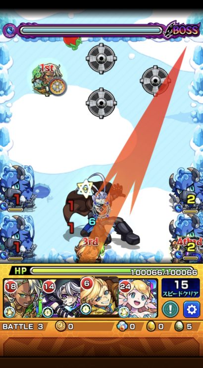 3手目はズラして配置したカラミティで斜めに弾いてワンパンしてフィニッシュ(・∀・) 周回効率重視の編成を毎度考える人の思考に驚く。それと同時に便乗してる身としてはただ有難い限り。