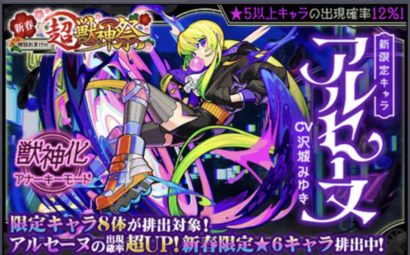 何と言っても目玉は新超獣神祭限定キャラのアルセーヌでしょう。今回は限定キャラ初の実装時から既に獣神化状態なので、Lv解放、証付与、戦型解放全て行えます。限定の唯一の難点は超戦型に出来ない事だったので素晴らしいですね。