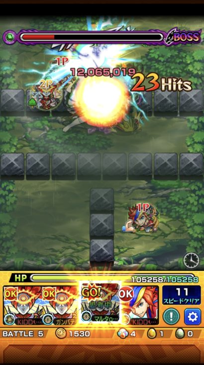 立ち回りは至ってシンプル。天使処理→速度ダウンを治す→雑魚処理→ボスの弱点が出る→ビットンと挟まって弱点狙う。