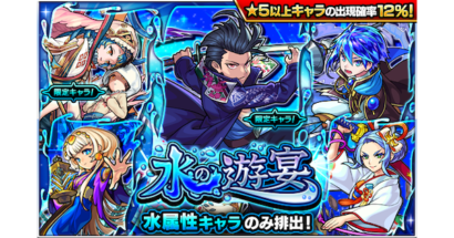 ある程度の事が片付き平穏なモンストライフを過ごしつつあります。そんなタイミングで水の遊宴が開催されておるではありませんか。言うてそこまで必要なキャラは居ないのですが、童子切出たらラッキー程度で少しばかり引いてみる事に。
