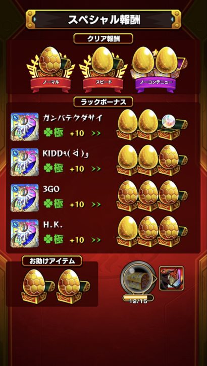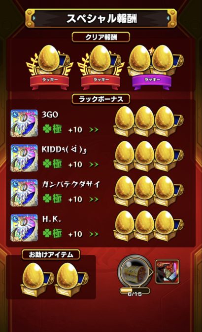 スタ半にしては珍しくドロップもまずまず。特に今回は至宝が良い仕事してたように思います。