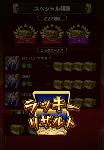 すると、ラスト1周でまさかのラッキーリザルト発動!これがもう少し前に来ていたらもっと早く解散したのに。