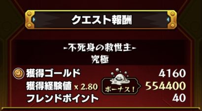 ソロ周回の方が効率良いのですが、その場合の最大獲得可能経験値はこれです。笑っちゃうよね。