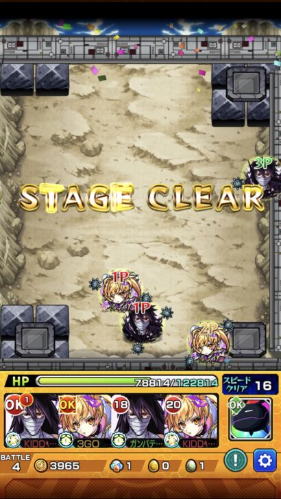 初見は一護の他に地雷以外に対応している雨竜も入れましたが邪魔だったので2回目はこの編成になりました。取り敢えず運ボが発動したのでパパッとボス戦まで到達してボス単体になってから一護→メタのSSコンボでワンパンしてフィニッシュ。