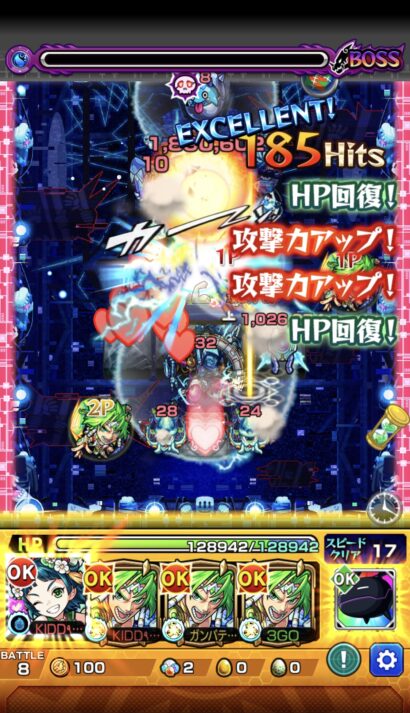 2回目からは枠を入れての周回を試みました。恐らく現状はヘラクレスと同族でシナジーの良いえまりがベストかと。えまりも事前に3体作ってあった内の1体を使って証を付与したので殴り面が強化される点に関しては◎