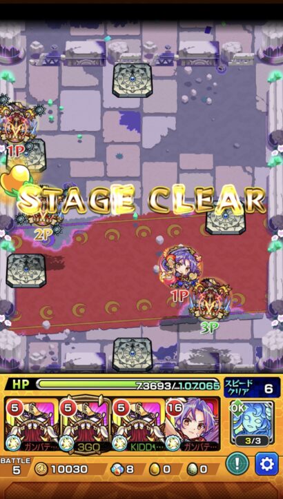 ギミックは魔法陣必須の減速壁が少々って感じでした。このギミックの少なさからしても簡単な事は明白。テキトーに編成して周回開始。