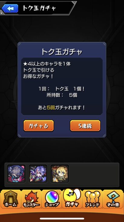 全て引かずに取っておいたので5回分まとめて引いてしまいます。割とトク玉に関しては通常イベ、コラボに関係無く相性は良いほうなので何の根拠も無い割には出る気がするから不思議。
