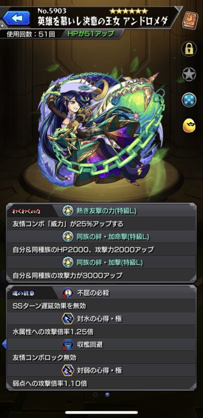 取り敢えずコツコツ貯めてたオーブ全てを消費するのはキツいので上限40連で勝負しました。意外と限定は出るもののアンドロメダは来ず(-_-) 嫌な空気が流れつつありましたが30連目でこれが!