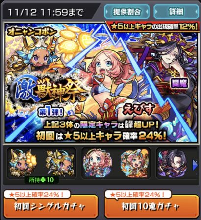 本来ならこの時期のガチャは引くべきか否か少し悩むのですが、メンテ後に新轟絶カウシーディヤのギミックが判明からの確認をすると明らかにえびすが適正筆頭っぼいではありませんか!これは狙う以外の選択肢はありませんでした。