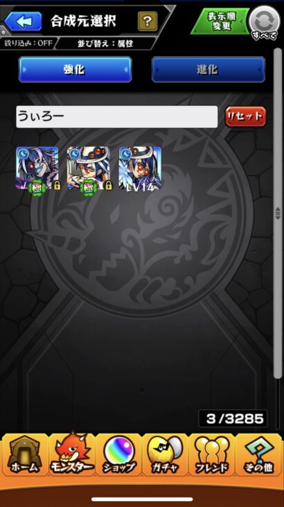 なかなか面倒で手を付ける気になれない人も多いのでは無いでしょうか?そんな新イベの激究極ウィローをタイミングを見てはチマチマと周回してました。基本的に激究極は進化、神化と両面あるので証を付ける時に備えてどちらも作るのが個人的な拘りだったりします。