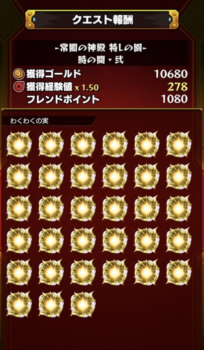 そんな普通の金曜ですが、モンストさんに関しては大いに浮かれますわな。何と言っても年末年始の特別企画なのか知らんけど1日1回限定というケチっぷりは突っ込みどころはあれど、神殿に特Lの実しか排出されない【特Lの園】なるものが実装されちゃったので厳選勢からしたら狂喜乱舞ですわ。