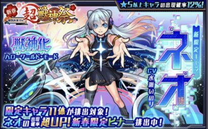 新年一発目は新春超獣神祭からスタート。でもって毎年恒例の新春限定キャラとして水属性のネオが登場しました。