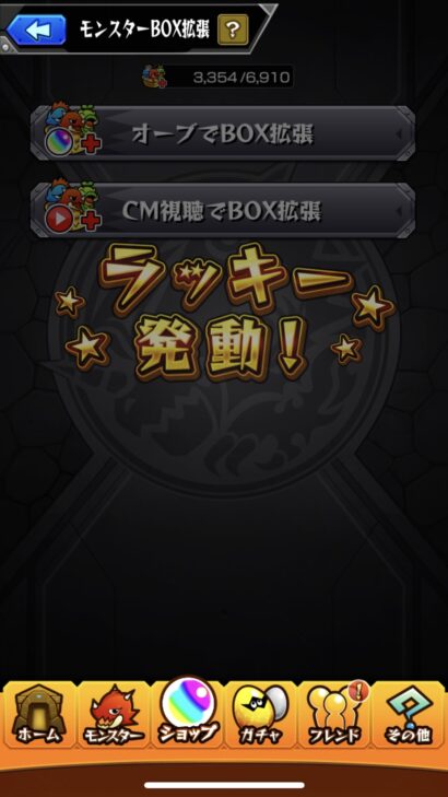 また、地味に嬉しいのがBOX拡張。ラッキーが発動で普段なら1つなところ一気に10枠空くので常にBOXが一杯になりがちな方には嬉しいんじゃないでしょうか?そんな事を書いてる内に本日も来てくれました。