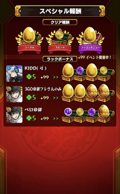 使用回数が100回超えてるとドロップが+1になるキャンペーン中なので周回も非常に捗りますな。100回以上の使用回数って意外と簡単になります。ガチャ限で使用回数10回にも満たない人はガチャ引かずにオーブ眺めてましょうw