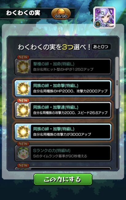鉄は熱いうちに打てって事でお昼休みを利用してダッシュで厳選開始。既に2枠は厳選済みだったので獣神化により増えた残りの1枠のみを厳選するだけの簡単なお仕事ですね。