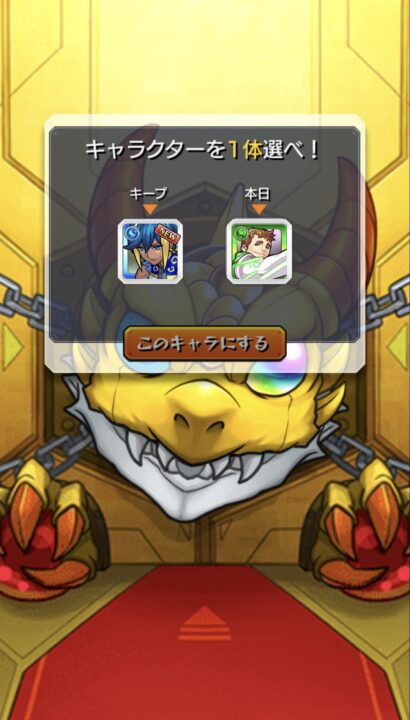 手始めに実装されたのが毎キープガチャ。何かと言うと読んで字の如く、13日間1日1回ガチャを回せて排出されたキャラをキープし続けられるイベントです。毎回どちらかを選択してキープ出来るのでなかなか面白い仕様かと。